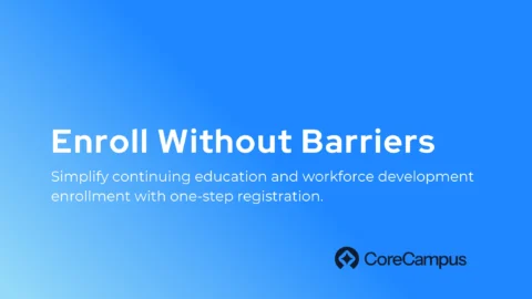 Discover how CoreCampus makes it easy to register for classes without admission. Streamline continuing education and workforce development registration today.