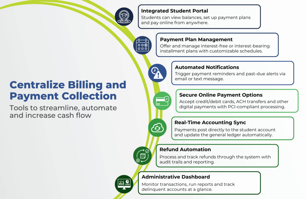 Reduce late payments, improve collections and offer students the flexibility they expect from one centralized platform.
